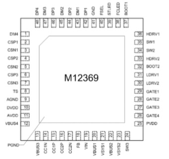 M12369 是一款面向大功率快充應(yīng)用的電源管理 SOC,集成了微處理器、雙路降壓變換器、快充協(xié)議控制 器,支持 PD3.1、QC3.0、SCP、FCP、AFC、BC1.2 DCP 等全部主流快充協(xié)議,結(jié)合少量元件即可組成雙C 口的 140W大功率快充解決方案;輔以 DC-DC 芯片,還可擴(kuò)展為3路獨(dú)立的C+C+AA多口大功率快充解決方案。