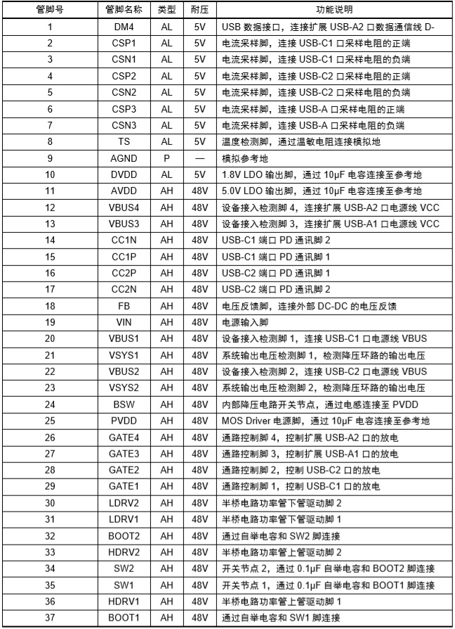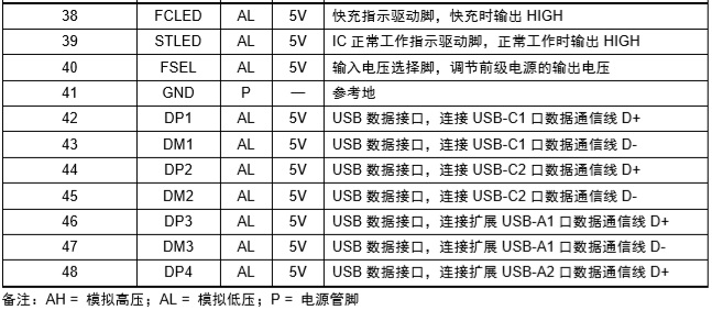 2-4節(jié)電池快充充電管理SOC ,內(nèi)置PD3.0、PD2.0、QC3.0、QC2.0、BC1.2 DCP、UFCS等協(xié)議 |