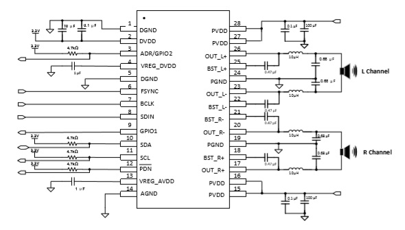 - PVDD: 4.5V 到26.4V