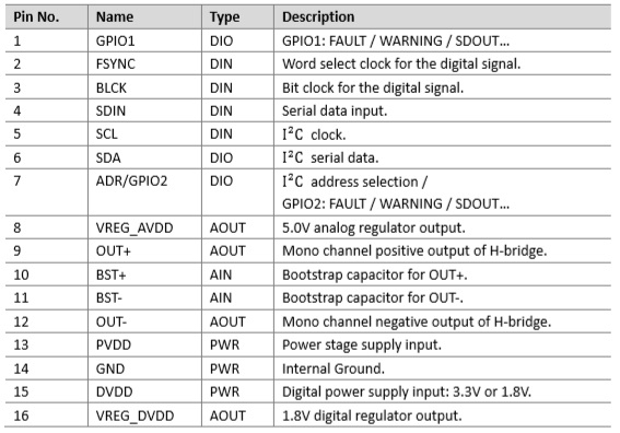 I2S數(shù)字輸入、3.1W單聲道D類音頻功率放大器 |