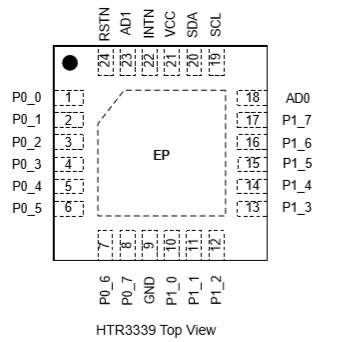 產(chǎn)品功能: HTR3339是一款I(lǐng)2C和SMBus IO擴(kuò)展器 , 2.2V~5.5V電源供電。16個(gè)IO端口中的任何一個(gè)都可以單獨(dú)配置為輸入或輸出。此外,任一IO可驅(qū)動LED。