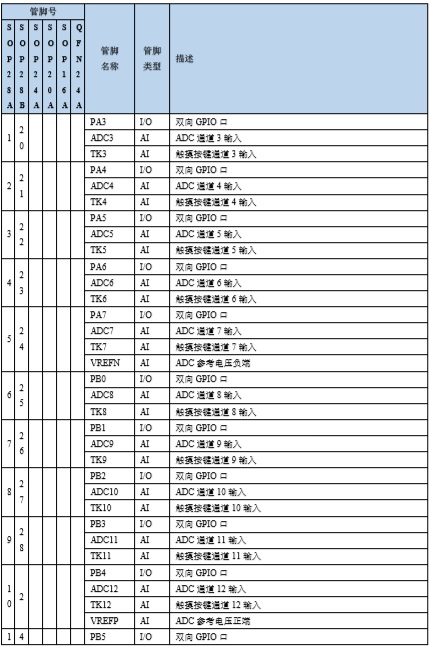 ┄ 支持最多 26+6 通道 AD 輸入,包括 VDD/4 電壓、IO/4 等