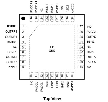 2×15W+30W (VDD=14.5V, RL=2×8Ω+4Ω, THD+N=10%) 2×8W+16W (VDD=12V, RL=2×8Ω+4Ω, THD+N=1%)