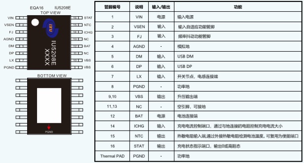 IU5208E提供了纖小的EQA-16封裝類型供客戶選擇,其額定的工作溫度范圍為-40℃至85℃。