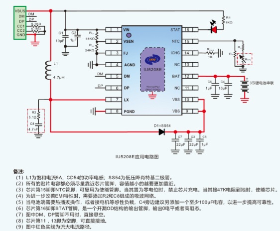 IU5208可以根據(jù)當(dāng)前電池電壓,通過DP/DM來向輸入端申請快充電壓;