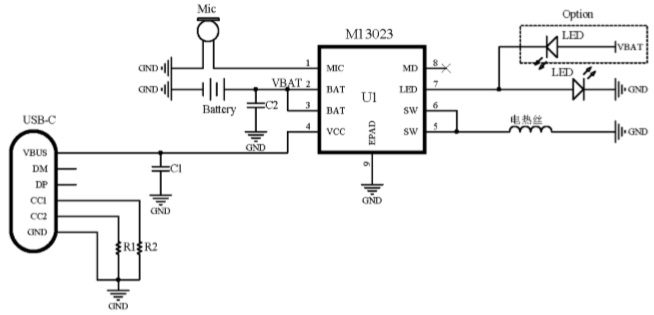 M13023是一款集成鋰電充電管理、咪頭檢測、LED直接驅動、電熱絲開關MOS、12-bit ADC于一體的高性能電子煙專用芯片。 |