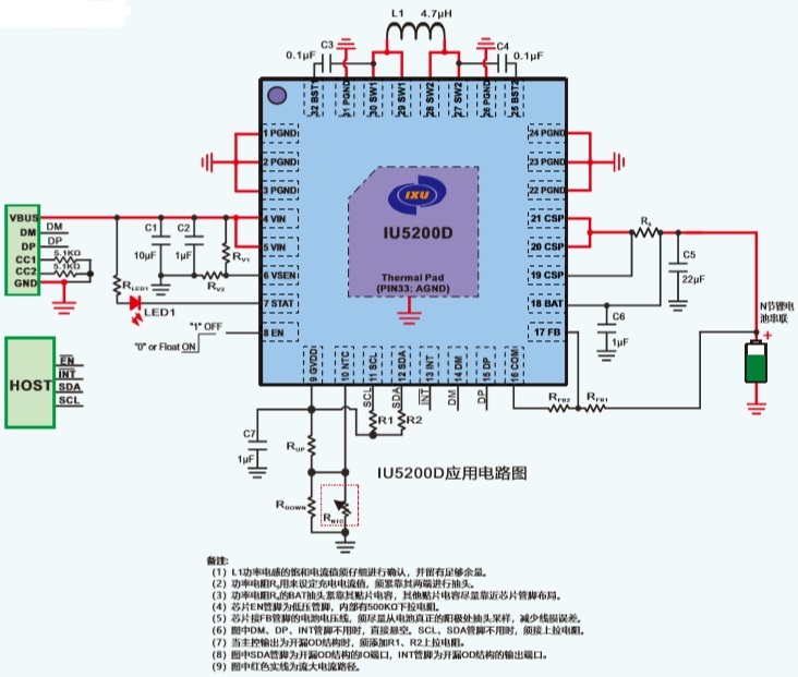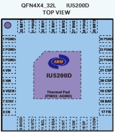 IU5200D支持I2C接口來控制充電過程的各個細節(jié)參數(shù),包括電池節(jié)數(shù)以及規(guī)格。采用QFN4X4_32L封裝。