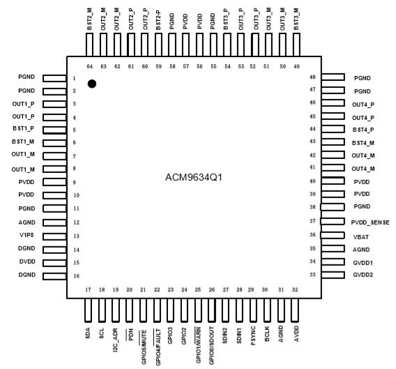 ACM9634是一款支持負載檢測的4*75W、4通道數(shù)字輸入車載D類音頻功率放大器。支持40V的load dump.在2.1MHz的開關(guān)頻率下可支持小尺寸輸出電感,節(jié)省PCB面積,同時也簡化AM Radio的抗干擾設(shè)計。ACM9634支持標(biāo)準(zhǔn)I2S或者TDM16的接口,可以在一組I2S(TDM)總線上支持16個喇叭發(fā)聲。內(nèi)部集成供電電壓檢測ADC,多路溫度檢測傳感器,能實時檢測電壓和溫度變化上報給主平臺優(yōu)化故障管理和熱管理。采用業(yè)界最全面的低EMI技術(shù),讓車載音響系統(tǒng)EMI設(shè)計變的簡單高效。