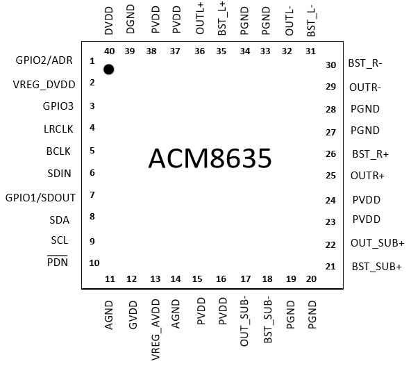 ACM8635(內(nèi)置DSP、40W+2X20W單芯片2.1聲道I2S輸入數(shù)字功放IC) |