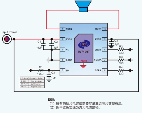 左右聲道可選,通過(guò)SD管腳電平設(shè)置