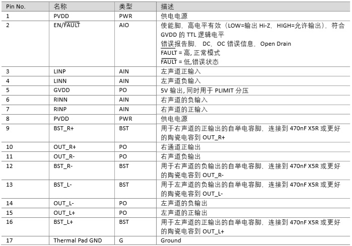 - PVDD: 4.5V 到 16V