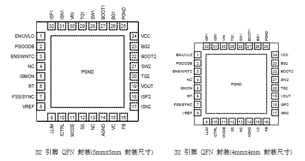 4x4mm 或 5x5mm QFN-32L |