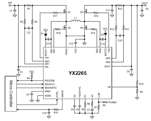 YX2265是一顆寬電壓同步升降壓控制器,輸入電壓范圍:4V至65V;輸出電壓范圍:2V至65V;CC/CV調(diào)節(jié)功能使其適用于電池充電系統(tǒng)。