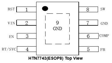 HTN7743具有外部環(huán)路補償功能,可靈活優(yōu)化環(huán)路穩(wěn)定性或環(huán)路響應(yīng)。HTN7743提供逐周期電流限制、熱關(guān)斷保護、輸出過壓保護、輸出過載保護和輸入電壓欠壓保護。該設(shè)備采用ESOP8封裝。