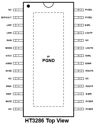 HT3286是一款高效D類音頻功率放大器。 在22V供電的立體聲(BTL)模式、THD+N=10% 條件下,能夠持續(xù)提供2*33W/8Ω功率輸出;在單聲道(PBTL)模式、THD+N=1%條件下,能夠持續(xù)提供50W/4Ω功率輸出。