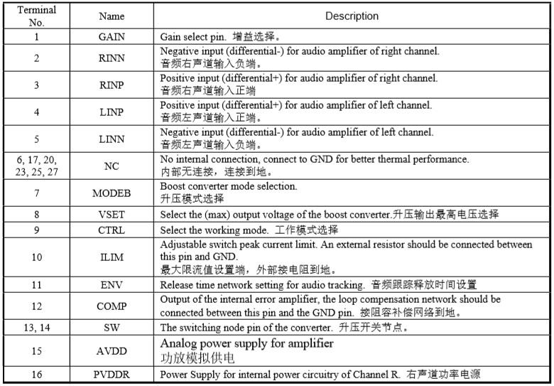 HTA8998內(nèi)置的升壓電路,可通過VSET腳設(shè)置最大升壓值,以滿足不同的輸出功率需求。 其還可通過外置電阻調(diào)節(jié)開關(guān)峰值電流限值。
