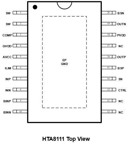 HTA8111的增益為32dB。 此外,HTA8111集成了輸出端過(guò)流保護(hù)、片內(nèi)過(guò)溫保護(hù)、升壓過(guò)壓保護(hù)等功能。