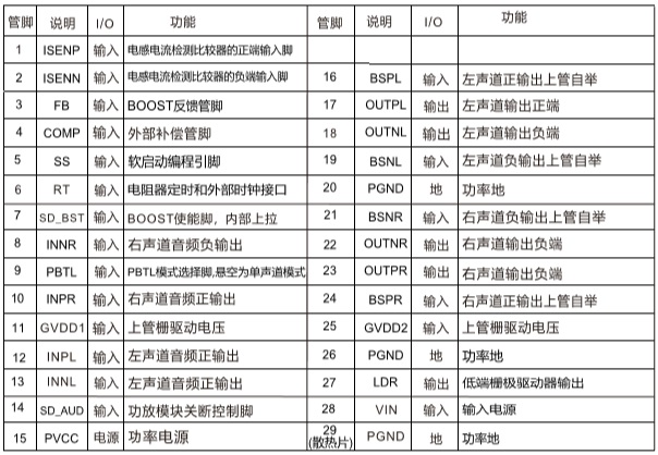 VIN=6.5-24V PVcc=26V P0=2×70W@THD+N=1%